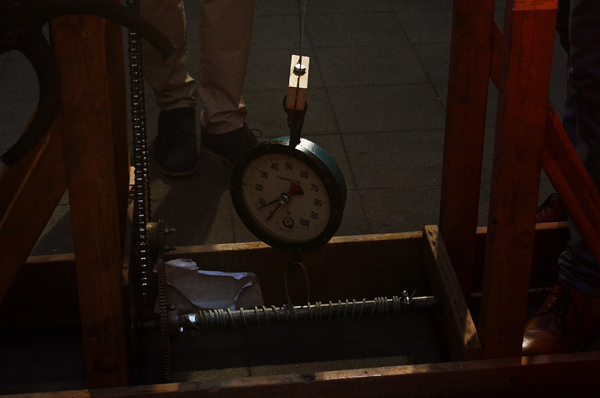 - Die Auflager der Prüfmaschine sind horizontale Holzflächen